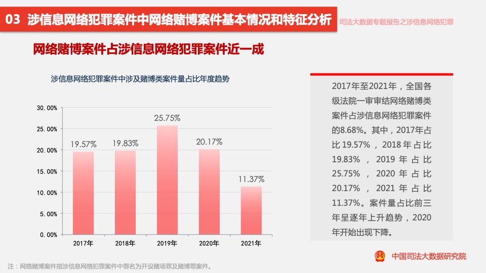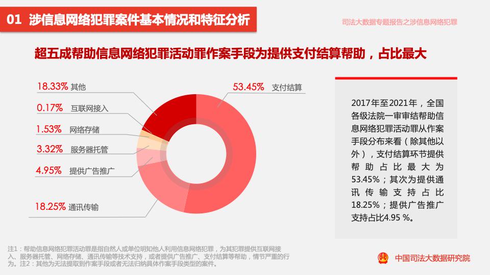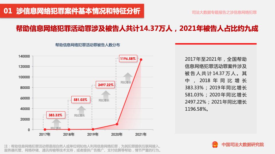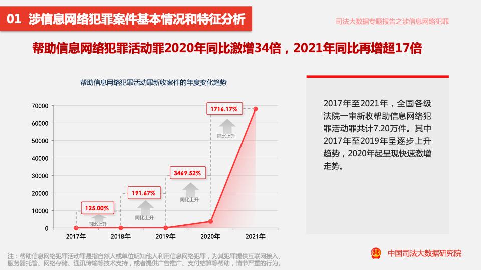 報(bào)告顯示,2017年至2021年,全國各級法院一審審結(jié)的幫助信息網(wǎng)絡(luò)犯罪活動(dòng)罪案件量占涉信息網(wǎng)絡(luò)犯罪案件量的11.88%。